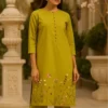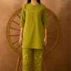 Bring freshness to your wardrobe with this green 2-piece co-ord set, adorned with delicate floral embroidery. Crafted in breathable fabric, it’s the perfect fusion of elegance and ease — ideal for brunches, Eid meetups, or casual get-togethers. This green embroidered co ord set features soft floral detailing that adds charm to everyday dressing.