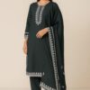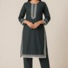 Grace your wardrobe with Moonstone Elegance, a timeless grey ensemble that blends subtle sophistication with intricate craftsmanship. The shirt features delicate embroidery all over, adding a refined touch to the soft grey base. Paired with a matching embroidered dupatta, this outfit radiates elegance from every angle.